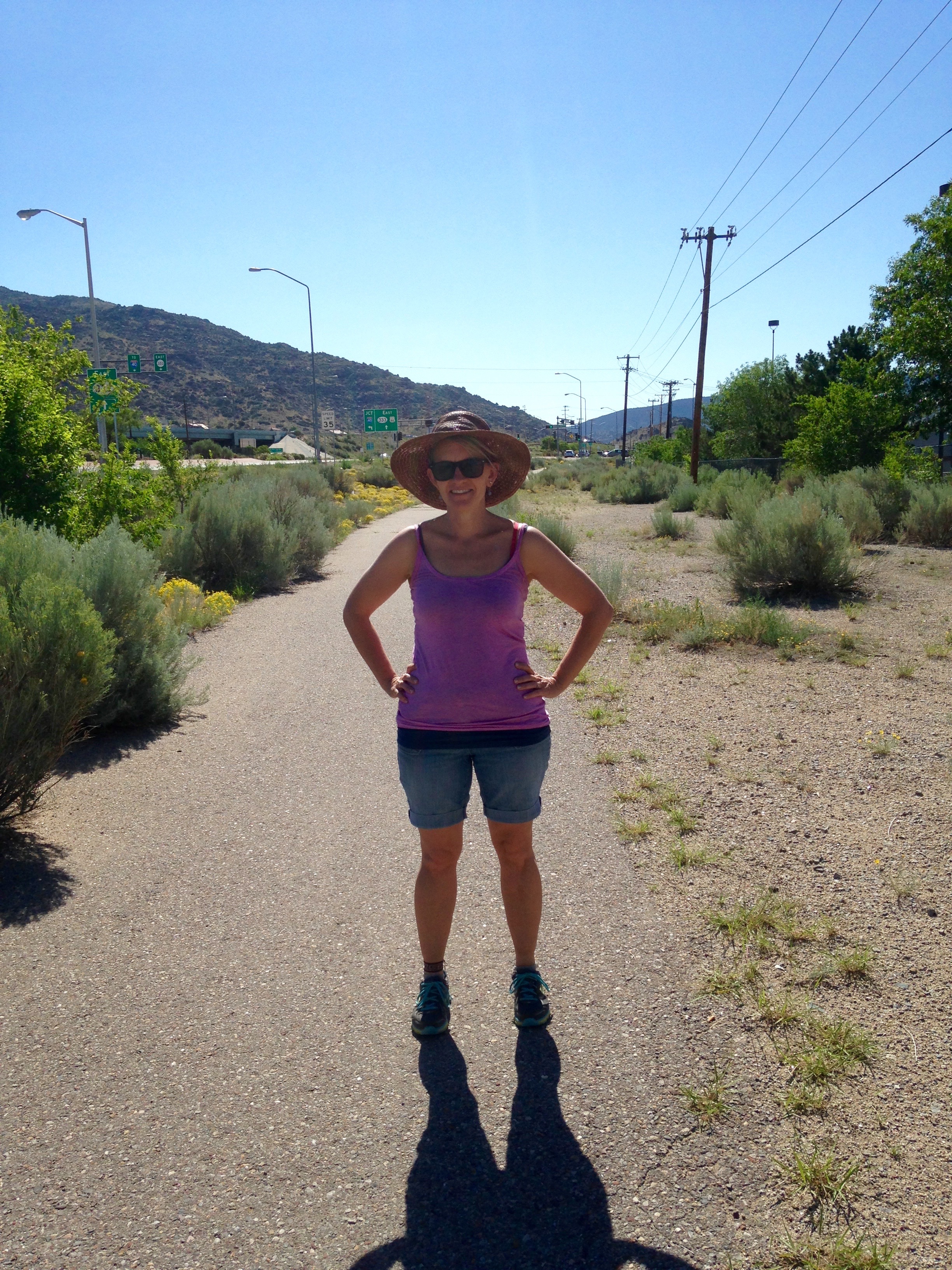 Equipped with our backpack, plenty of water, our hats, and sunglasses, we set out bright-eyed, bushy-tailed, and super chipper. The path toward Tijeras was lovely, hot, with a nice cool breeze. Perfect day for a hike. After about 4 miles of a steady gradual uphill slope, my muscles were crying a little so I was pretty excited to see the 6 mile marker. But that’s also when we realized that we underestimated the distance. We thought we’d figured the distance at 6 miles even, but it ended up being 6.9 to the Subway where we were planning to have lunch.